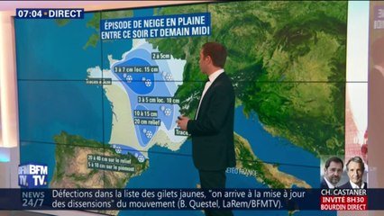 Météo france, dans ses prévisions pour la nuit de mercredi à jeudi, annonce qu'on ne peut exclure quelques flocons mêlés à la pluie, voire du verglas. Il peut neiger sur la neva. Météo france prévoit un phénomène neigeux sur la france dans la nuit de lundi à mardi, ainsi que lundi matin. La météo prévoit qu'il va neiger dans la nuit demain. Impossible de trouver le chemin de la neige qui virevolte !